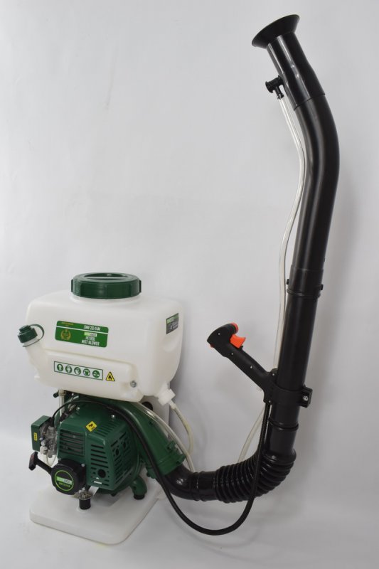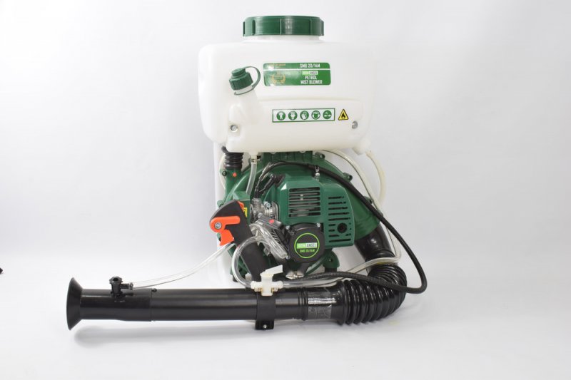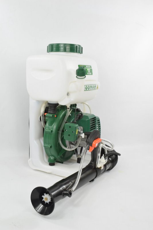Бензиновий обприскувач з повітряним розпилюванням з додатковим бустерним насосом. Бустерний насос дозволяє збільшити напір рідини шляхом нагнітання, при цьому з'являється можливість обприскувати високі дерева.